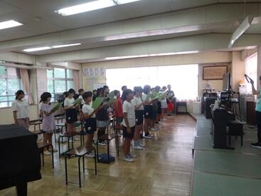 校長室にいると2階の音楽室から歌声や楽器の音が聞こえてきます。音楽室に行くと5年生が歌を歌っていました。とってもきれいな歌声が音楽室中に響き渡っていました。