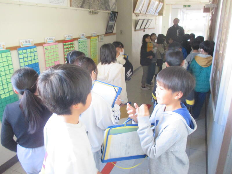 3・5年生は、普段は使わない外階段を静かに降りて避難しました。
