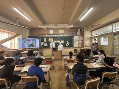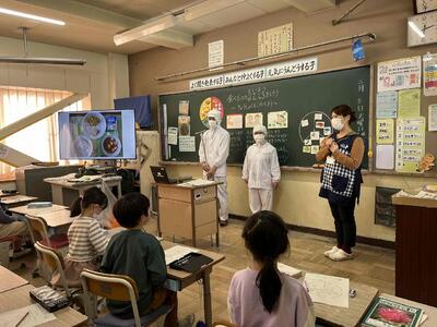 授業の最後には、栄養士の先生・調理員さんにも来ていただき、どんな気持ちで給食を作っているかを聞くことができました。