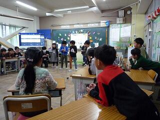 本日は、4・5・6年、あゆみ学級で、学習参観・学級懇談会を行いました。足元が悪い中、たくさんの保護者の皆様にご来校いただきました。第5校時の授業では、国語や理科、総合的な学習の時間など、様々な教科・領域の学習を参観していただきました。「自分の考えを述べ、相手に伝える」「これまでの学習の成果を友達やお家の方に見ていただく」などの場面があり、1年間のまとめの時期として立派な姿を参観していただくことができたのではないかと思っております。授業後の学級懇談会では、3学期・1年間の子供たちの成長の様子をお伝えするとともに、さらに力を高めていけるとよいことなどについてもお話しました。