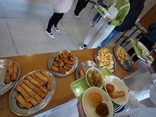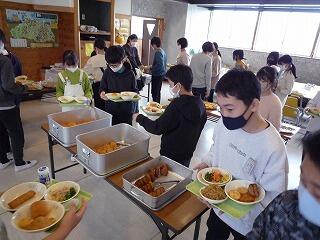 6年1組がバイキング給食を行いました。主食・主菜・副菜を自分で考えることで、栄養のバランスがとれた食事を学びます。ランチルームに並べられたたくさんのメニューに、食べる前からわくわく感が伝わってきました。実際に選び始めると、量を考えたり、盛り付け方を考えたり、食べる組み合わせを考えたり、いろいろなことに視点を置いて慎重に選んでいる様子が見られました。それぞれのテーブルで、友達と楽しく会話しながら、いつもとは違った給食を楽しんでいました。