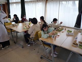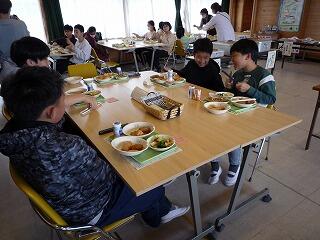 6年生がグループで、校長先生と一緒に給食を食べながらいろいろなお話をします。