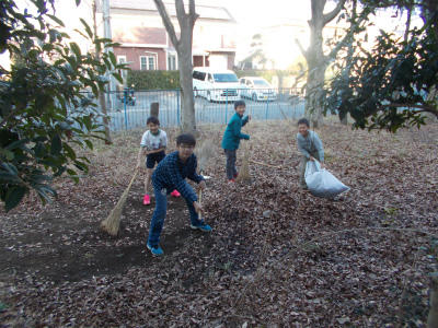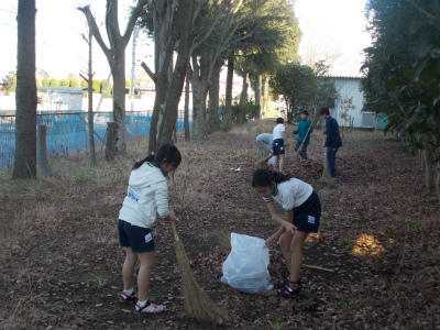 今日の委員会では、6年生が体育小屋の整理、5年生が落ち葉はきをがんばってくれました。