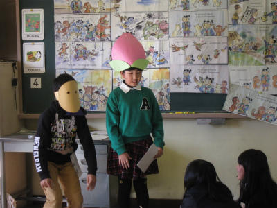 6年生が、英語の時間に桃太郎の英語劇を発表しました。