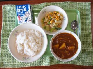 今日の給食は、ビビンバ、牛乳、スーミータンです。