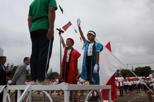 運動会が、始まりました。石川市長さんも、激励にお見えになり、花を添えていただきました。