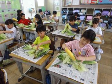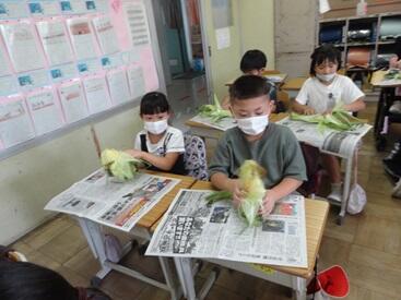 今日の給食にとうもろこしが出されました。そのとうもろこしの皮をむいてくれたのが2年生です。皮むき初挑戦の子が多かったように感じましたが、皮1枚1枚、ひげ1本まで丁寧にむいてくれました。2年生のおかげでおいしいとうもろこしを食べることができました。2年生のみなさん、ありがとうございました。