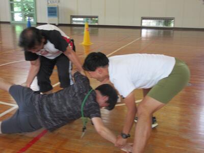 8月26日(火)体育実技研修 楽しく体を動かせるように、教職員も本気です。