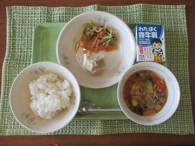 10月23日(金)ピリ辛みそ丼にはたくさんの野菜が入っています。