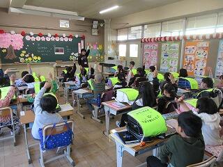 1年生 入学式後の第1日目です。緑小の約束、施設設備の使い方など、緑小の様子を知る1日でした。下校は同じ方面の友達と班を作っての帰りです。覚えることがたくさんありますが、毎日少しずつ覚えていきましょう。