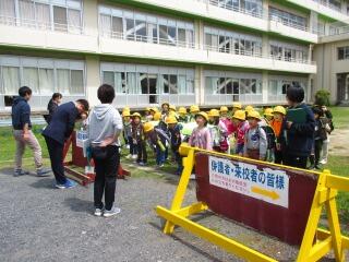 地震後、火災発生を想定した避難訓練を実施しました。今回は、新年度最初なので、避難経路を確認する意味合いを含む訓練でした。子供たちは、放送をよく聞き、「おかしもち」をしっかり守りながら、落ち着いて避難することができました。校長先生からは、「練習は本番のように、本番は練習のように」という、訓練への臨み方、もしもの時の心構えについてお話がありました。