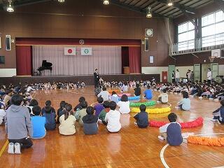 1年生を迎える会がありました。前代表委員のみなさんが中心となって会が進みました。はじめの言葉に「1年生を温かい気持ちで迎えましょう」とありましたが、言葉のとおり、ほのぼのとした温かい雰囲気の中、1年生を迎えることができました。2年生からは、プレゼントの贈呈もありました。