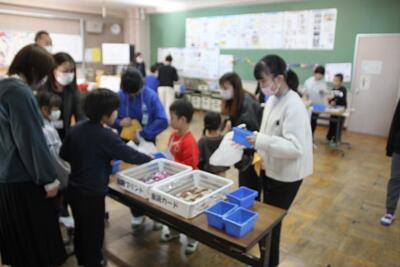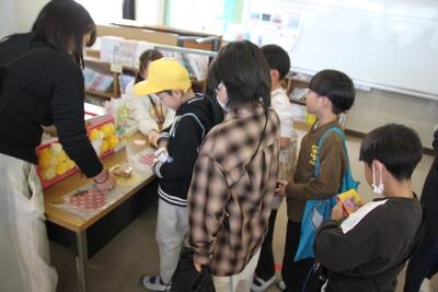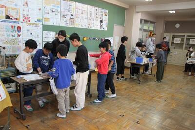 学校公開を行いました。さくら学級では生活単元の合同学習で、お店屋さんをしました。客と店員とに分かれ、模造銭を使って買い物をします。おつりの計算を間違えないよう、友達と確認しながら店員役をします。お客役も、決められた予算内での買い物を楽しんでいました。