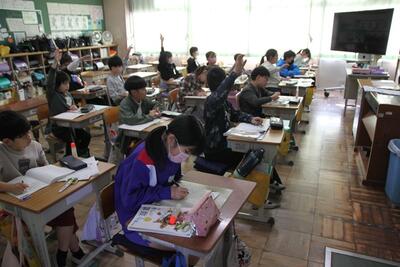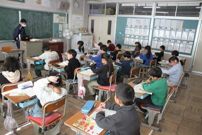 3・4年生に引き続き、5・6年生も競書会を行いました。3・4年生よりも文字が増え、難易度が上がります。ですから、1枚仕上げるのにも集中力がいります。どの子も丁寧に書いていました。