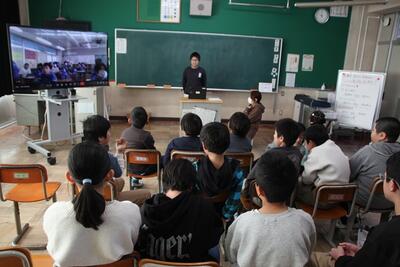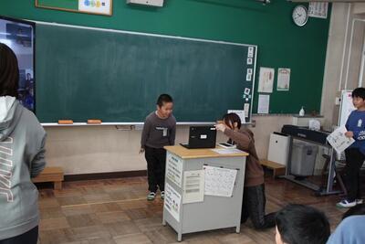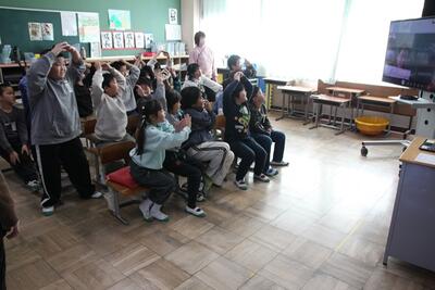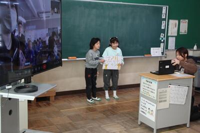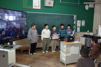 葛飾中学校区の学校がオンラインで交流会を行いました。3校で役割を分担しながら進行をし、それぞれ、自己紹介やクイズを出すなどして交流しました。オンラインではありますが、昨年まで南小にいた先輩たちに出会えて、子供たちはとても嬉しそうでした。