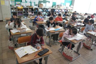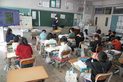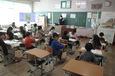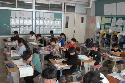 2年生の国語では「おはなしの さ物語をくしゃになろう」という単元で、物語づくりを学習しています。登場人物を設定、どんなお話にしようか考えながら書いていきます。みんな夢中になって書いていました。