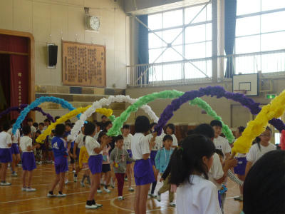 リレーの学習です。一生懸命走り、バトンをつなぎます。