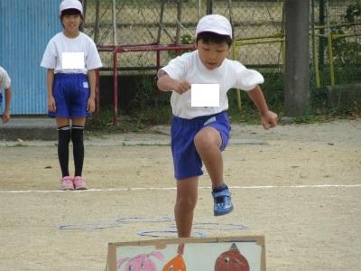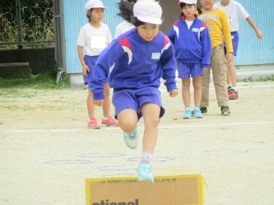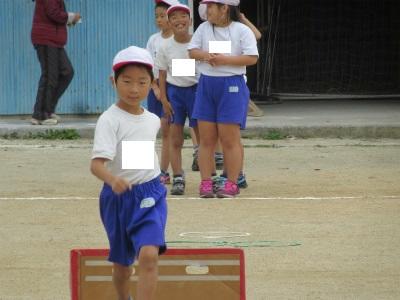2年生が、障害走あそびをしていました。段ボールや空箱を使って、障害走あそびをしていました。リレー形式で、楽しく活動していました。