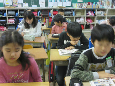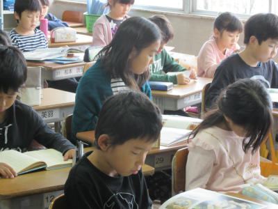 高学年の子どもたちも、集中して読書をしていました。休み明けの月曜日に、しっかり取り組めてよかったです。