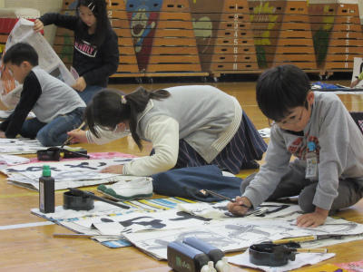 3年生が、書きぞめを真剣に取り組んでいました。『あさひ』という文字を、1字1字しっかりと描いていました。どんどん上達していきますね。