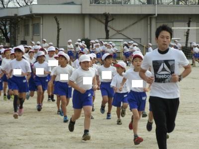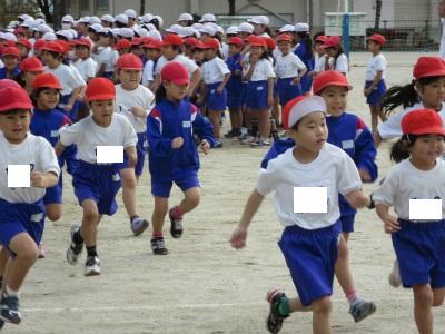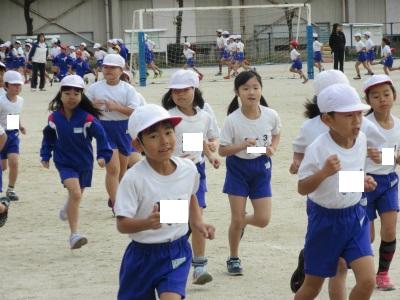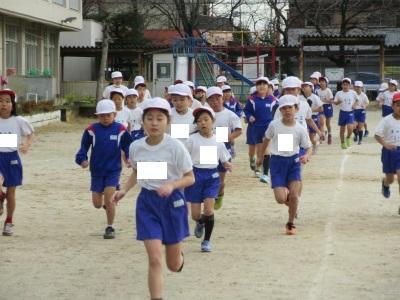 どの子も、5分間走に走り出しました。最初は、クラス全体で走っていますが、どんどん自分のペースで走れるようになっています。上位を目指して、しっかり頑張ってください。