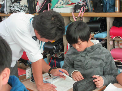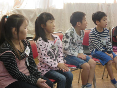 ハロータイムで、2年生の子どもたちは、フルーツバスケット形式で、自分の持っている鉛筆の色で動いていました。ゲームをしながら、会話をしていくのがとても楽しかったようです。