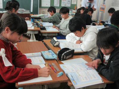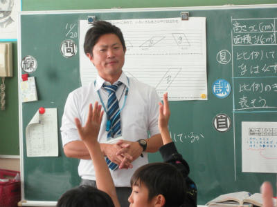 6年生が、算数の研究授業を行っていました。比例の所で、y=決まった数×Xということで、1人1人意欲的にいい意見を言っていました。