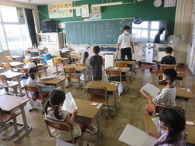 どの教室も、だいたい半分くらいが登校していました。第一日目は、始業式、学級活動等2時間、一斉下校の予定となっています。