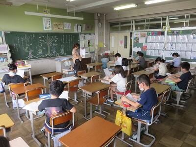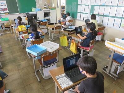 今日は、Bグループの登校日でした。昨日同様に、4時間中1時間は、chromebookの立ち上げから、グーグルクラスルームに入り、グーグルミートを立ち上げテレビ会議システムを使えるように練習しました。帰るときには、ランドセルにchromebookを入れて持ち帰りました。ご家庭でWi-Fiに接続できるか確認をお願いします。