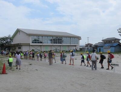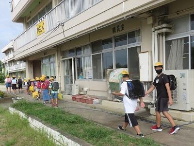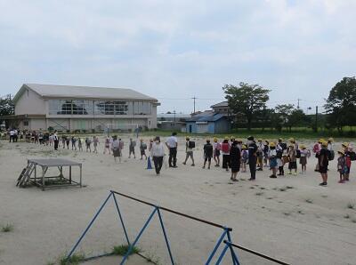 3時間目が終了すると、子どもたちは校庭に集合しました。通学班ごとに下校しました。