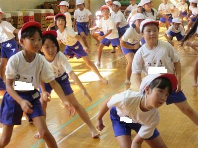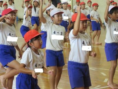 1年生と2年生が、運動会のダンスの練習をしていました。題名は、『できっこないよ やらなくちゃ』で、今日は、踊り方を1つ1つ学習していました。