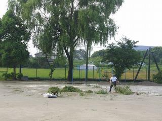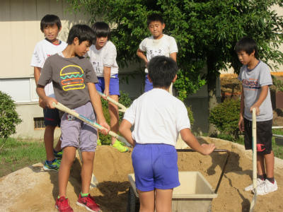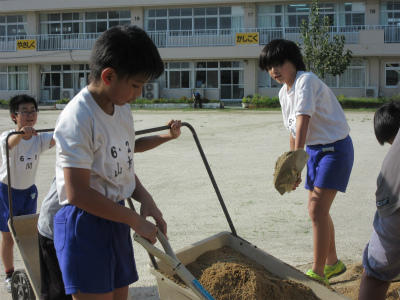 今日の委員会活動の時間に、運動委員の子どもたちは、校庭の整備をしていました。昨日の大雨で、校庭が使えなかったので、早く使えるように自分たちでしっかり活動していました。