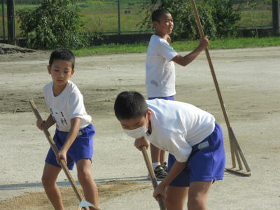 校務員さんが、朝早く、児童が登校する前から、昇降口や校庭をきれいにしてくださっています。ありがとうございます。