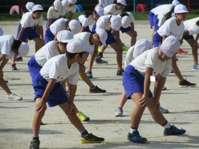 5年生、6年生が運動会の練習が3日目にして、組体操の技がだいぶ進みました。すごい勢いですね。当日のできばえを楽しみにしていてください。