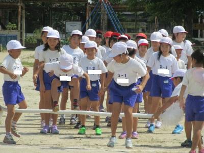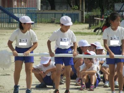 3年生の団体種目、『台風の目』の練習をしていました。初めての練習だったので、棒を渡すまでにとても時間がかかっていました。少しずつ上手になってきました。