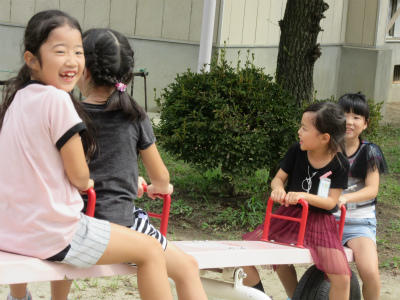 昨日の練習が台風のため、できなかった3年生と4年生は、今日、昼休みから頑張って練習をしていました。『どっこいしょ・どっこいしょ…』という大きな声が聞こえてきました。