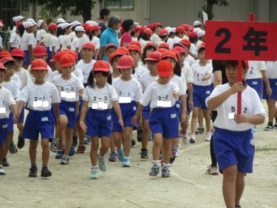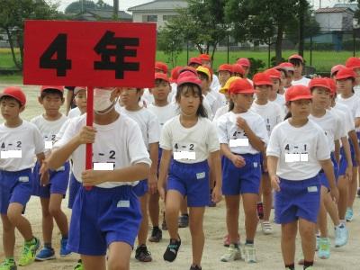 金管バンドの演奏を中心に、各学年が入場してきます。夏休みから、金管バンドクラブの児童は、しっかり練習をしていました。