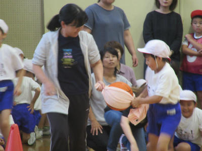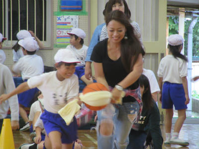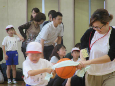 2年生が学年活動で、ボール運びリレーをやっていました。親子で、タオルを使って、ボールを運ぶ折り返しリレーです。ボールを落としながらも、楽しそうに行っていました。
