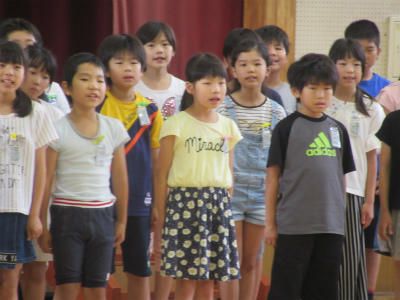 今日、音楽朝会がありました。発表は、4年生でした。『ゆかいに歩けば』の音を切って歌う歌い方を練習しました。4年生の発表もとてもきれいな歌声でした。