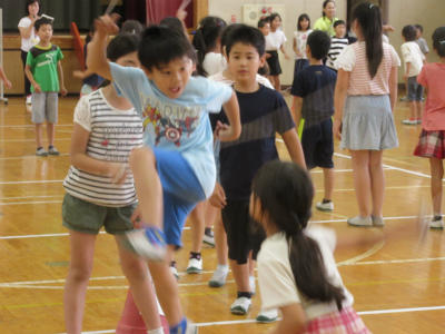 今日は、ロングの昼休みでふれあいタイムの時間でした。15のグループに分かれて、校庭や体育館で活動していました。低学年の児童も、とても楽しそうでした。