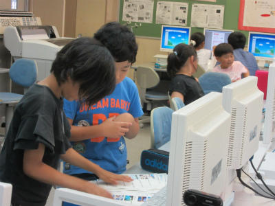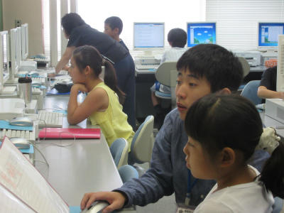 4年生が、総合の調べ学習をしていました。インターネットを使って、調べていました。頑張る態度がとてもいいです。大学生のお兄さんにも、手伝ってもらいました。