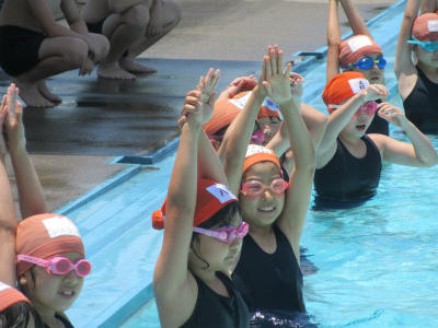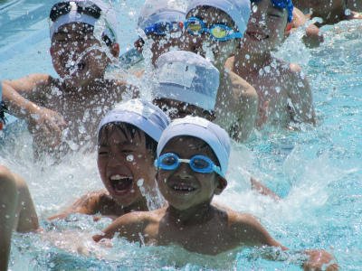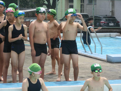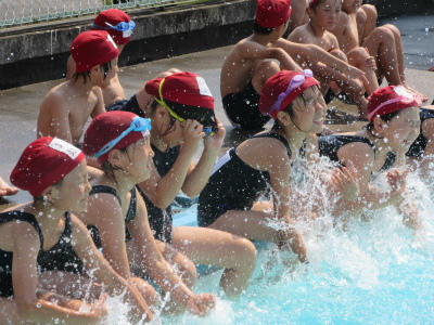 5年生は、初めての水泳学習でした。ずっと入れないでいたので、子どもたちは大喜びでした。25mがすいすい泳げるようにしてください。