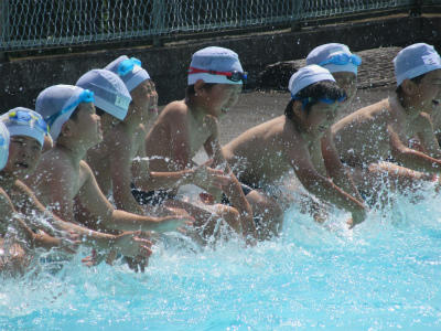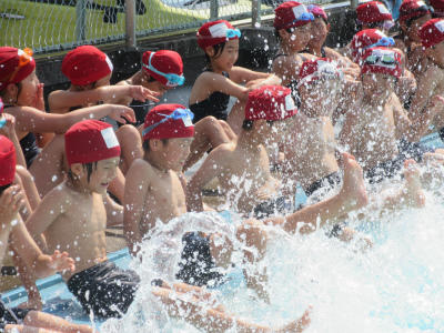 2年生も、水泳学習を頑張っていました。まだ、しっかり泳ぐことができていない2年生ですが、けのびを中心に、きちんと浮くことができれば、1歩前進ですね。