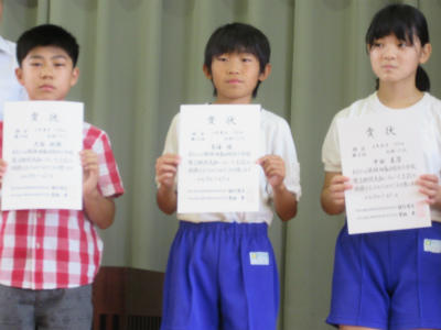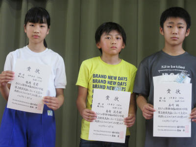 今日、市内陸上大会の表彰を行いました。各種目ごとに表彰を行い、賞状を伝達しました。表彰の数の多さにとても驚いた日でした。みんな、よく頑張りました。