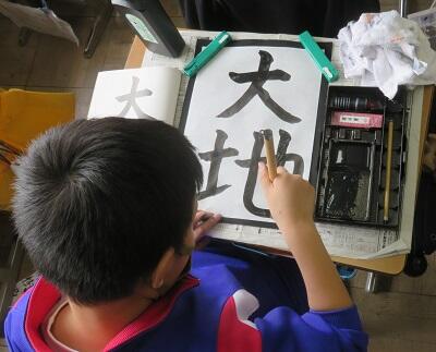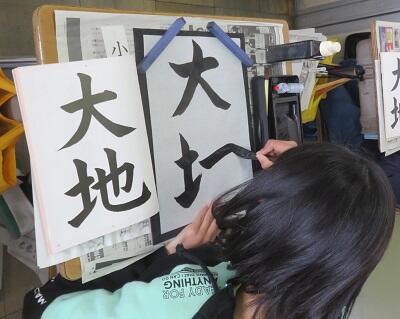 3年生が、今年度最後の毛筆を行っていました。どの子も真剣な表情で筆を動かしていました。