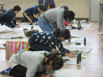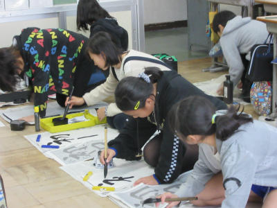 6年生が、書きぞめを行っていました。あと2回の練習で、競書会ですので、1字1字、上手になれるように頑張ってください。