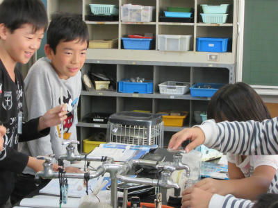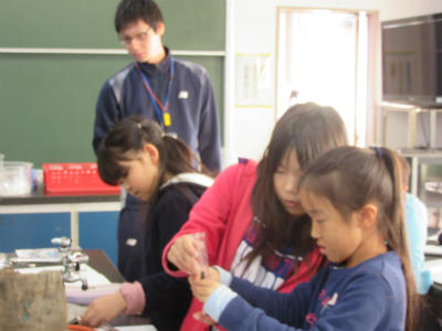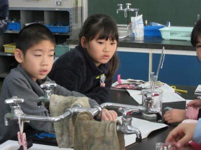 4年生が、氷の実験をやっていました。氷を使って、0℃まで下げて凍らせる実験です。試験管が少しずつ凍ってきて、すごく喜んでいました。