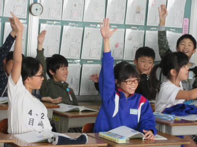 4年生が、道徳の授業を真剣にしていました。心と心のあく手で、主人公のぼくとおばあちゃんのやりとりをうまく話し合っていました。