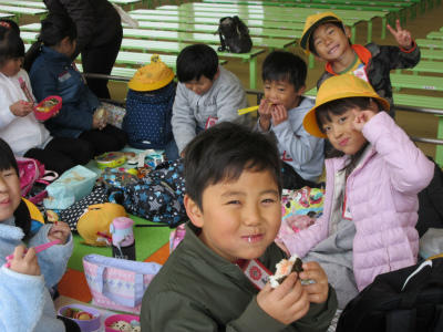 動物を見学してきてから、早めの昼食になりました。子どもたちは、給食と違ってお弁当だったので、とてもうれしそうでした。