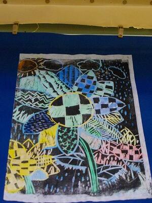 4年生が版画に挑戦しました。「彫ってあらわす不思議な花」という題材だそうです。